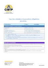 Ce document indique les taux en vigueur à la date du 1er janvier 2026 pour les cotisations Congé payé, OPPBTP, OPPBTP des intérimaires, Intempéries Gros-Œuvre et Second-Œuvre mais aussi tout ce qui concerne les majorations et les sanctions.
